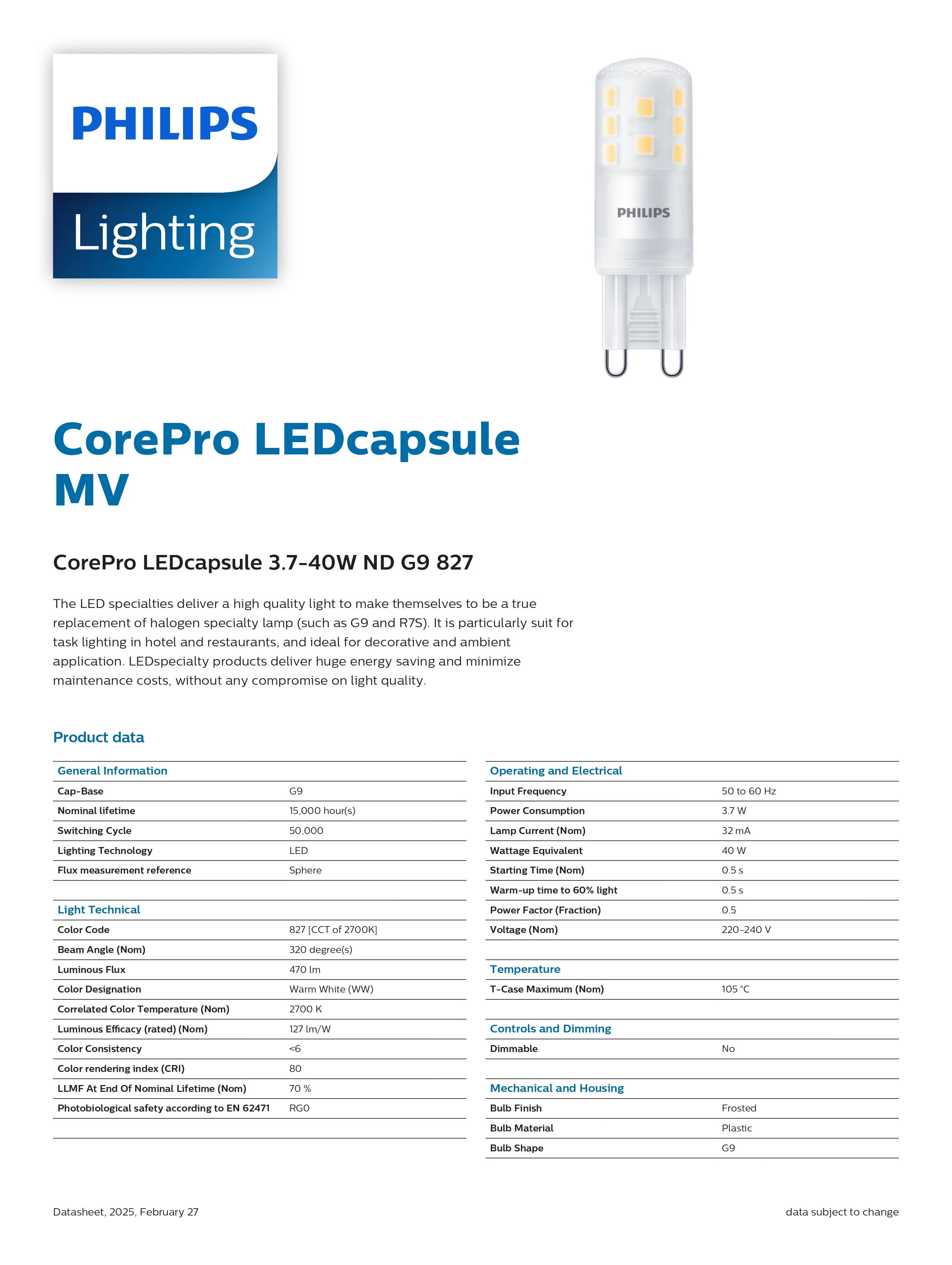 Bóng đèn CorePro LEDcapsule 3.7-40W ND G9 827