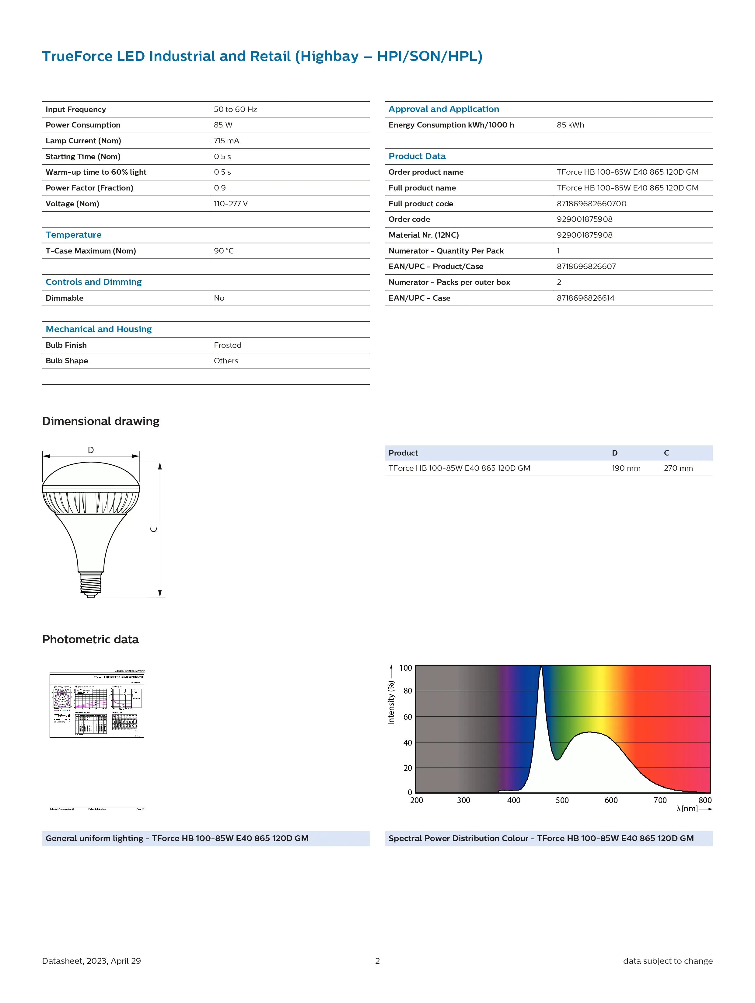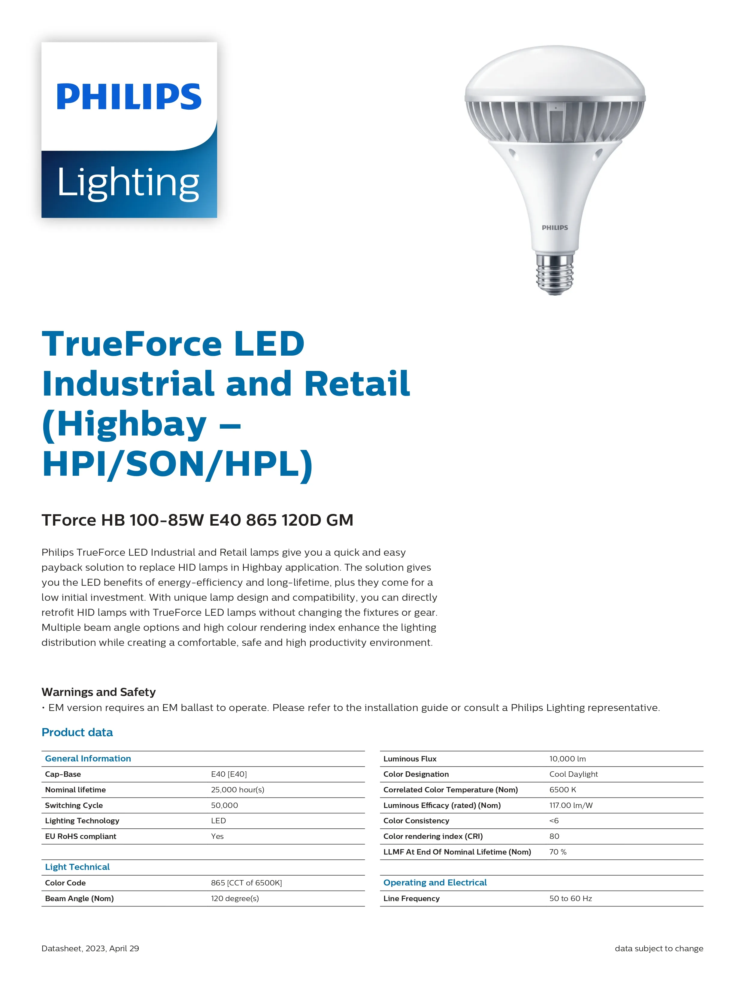 Bóng đèn TrueForce HB 100-85W E40 865 120D