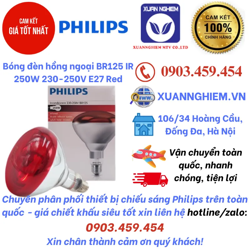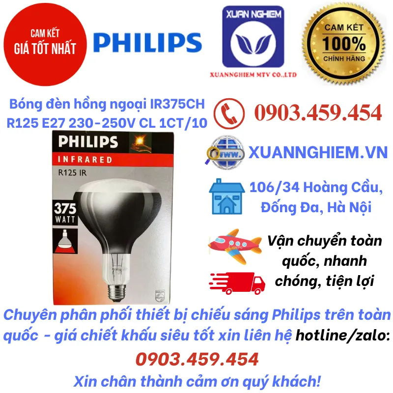 Bóng đèn hồng ngoại 375W Philips IR375CH R125 E27 230-250V CL 1CT/10