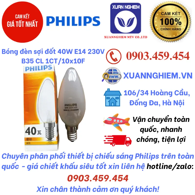 Bóng đèn sợi đốt halogen 40W E14 230V B35 CL 1CT/10x10F Philips