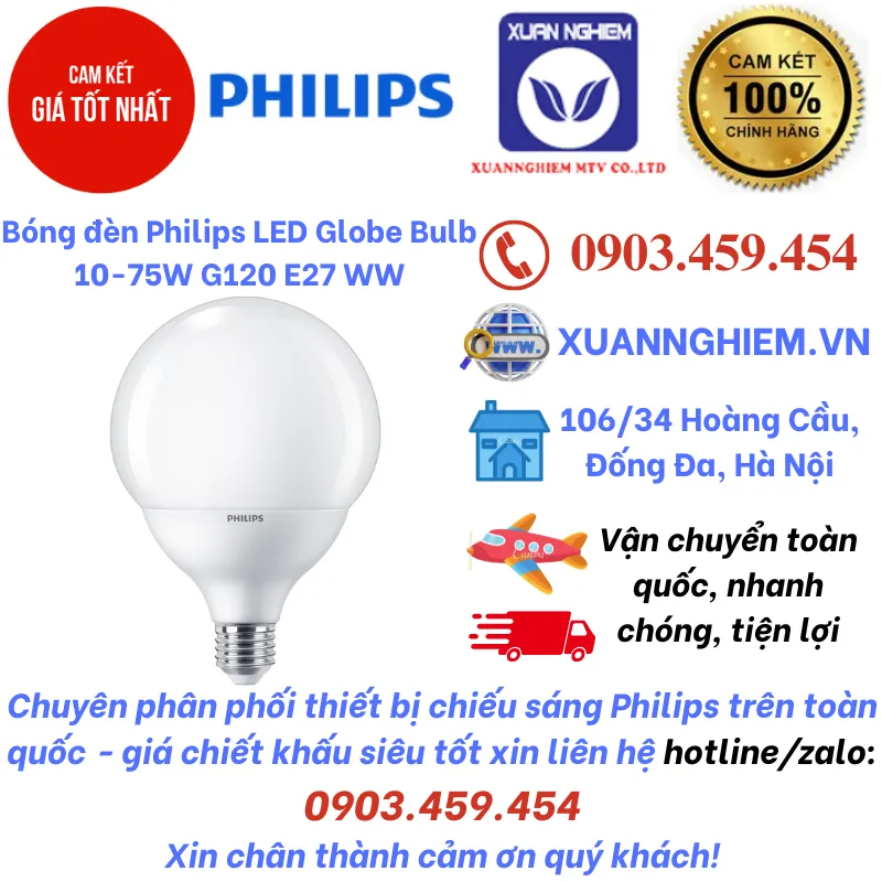 Bóng đèn Philips LED Globe Bulb 10-75W G120 E27 WW