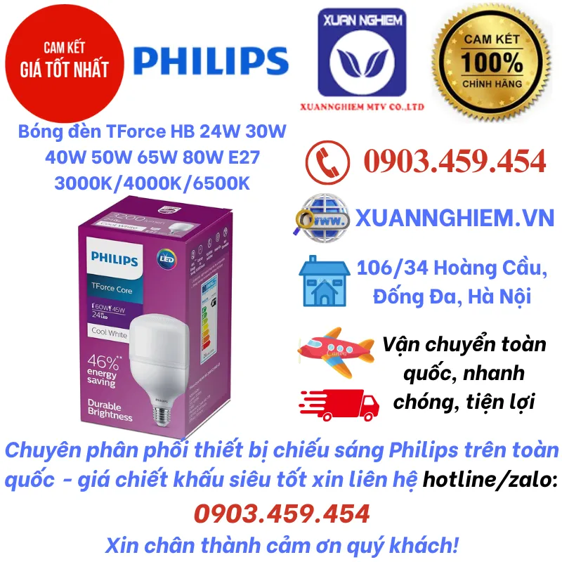 Bóng đèn TForce Core HB 24W 30W 40W 50W 65W 80W E27 3000K/4000K/6500K
