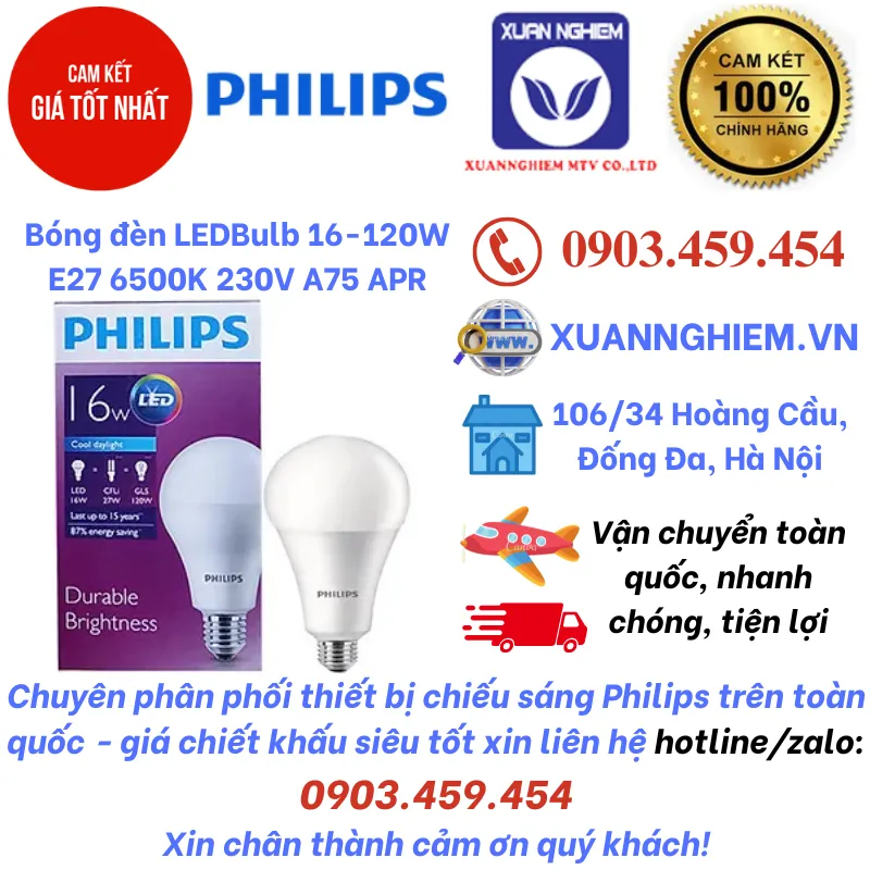 Bóng đèn LEDBulb 16-120W E27 6500K 230V A75 APR