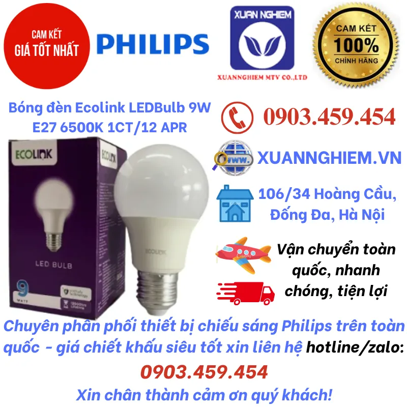 Bóng đèn Ecolink LEDBulb 9W E27 6500K 1CT/12 APR