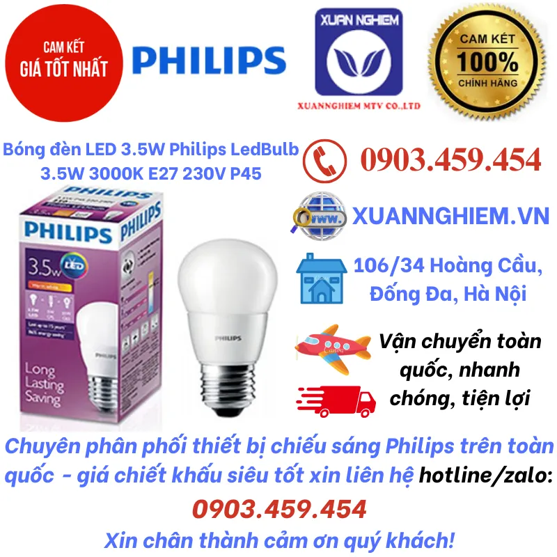 Bóng đèn LED 3.5W Philips LedBulb 3.5W 3000K E27 230V P45