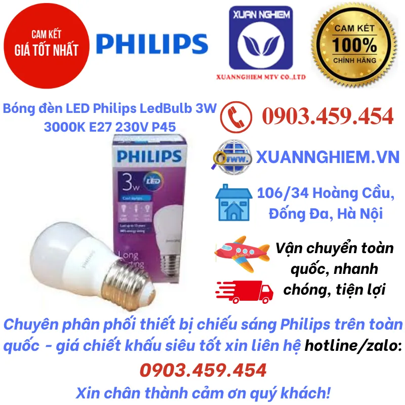 Bóng đèn LED Philips LedBulb 3W 3000K E27 230V P45