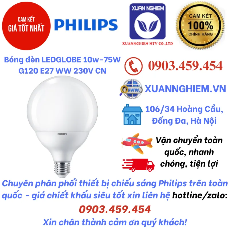 Bóng đèn LEDGLOBE 10w-75W G120 E27 WW 230V CN