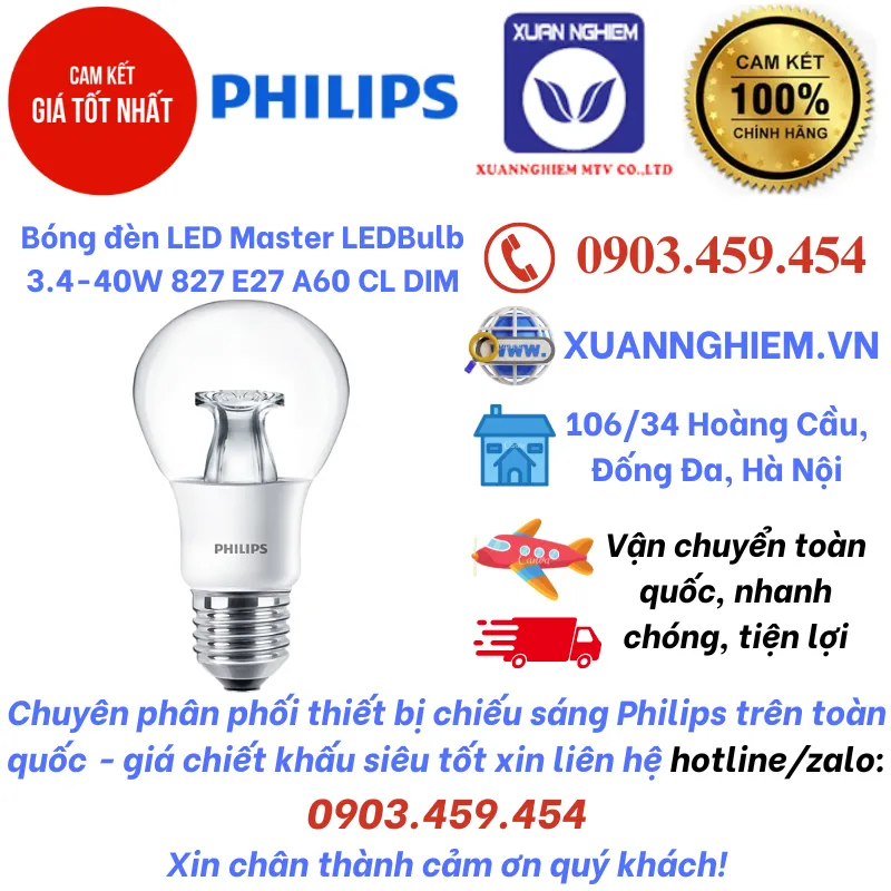 Bóng đèn LED Master LEDBulb 3.4-40W 827 E27 A60 CL DIM