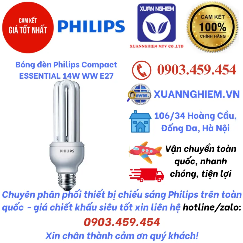 Bóng đèn Philips Compact ESSENTIAL 14W WW E27