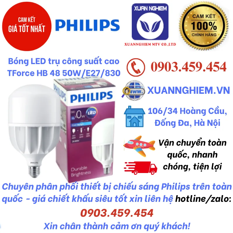 Bóng LED trụ công suất cao TForce HB 48 50W/E27/830