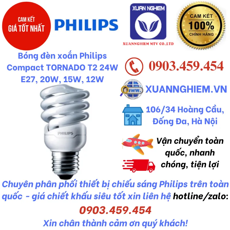 Bóng đèn xoắn Philips Compact TORNADO T2 24W E27, TORNADO 20W, TORNADO 15W, TORNADO 12W