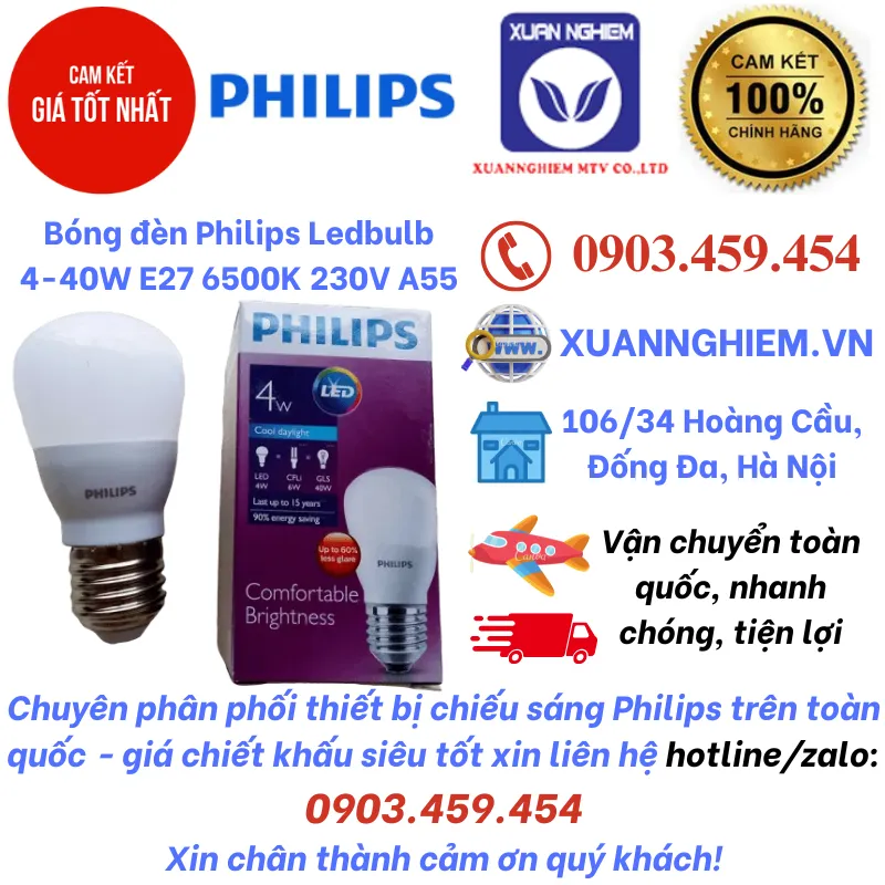 Bóng đèn Philips Ledbulb 4-40W E27 6500K 230V A55
