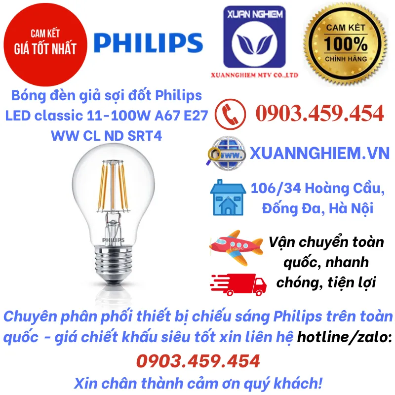 Bóng đèn giả sợi đốt Philips LED classic 11-100W A67 E27 WW CL ND SRT4