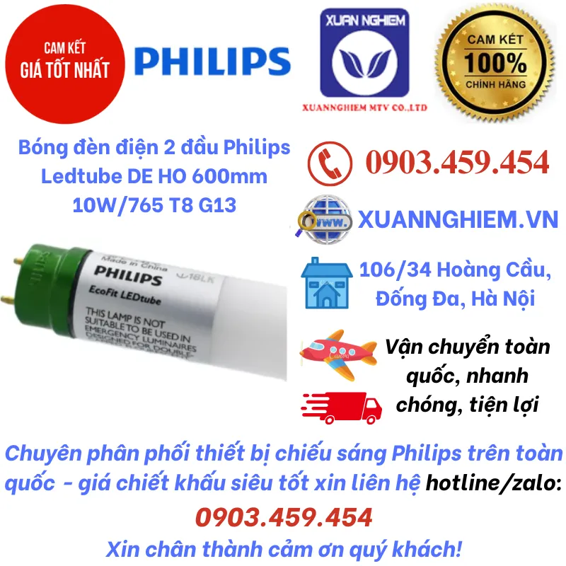 Bóng đèn điện 2 đầu Philips Ledtube DE HO 600mm 10W/765 T8 G13