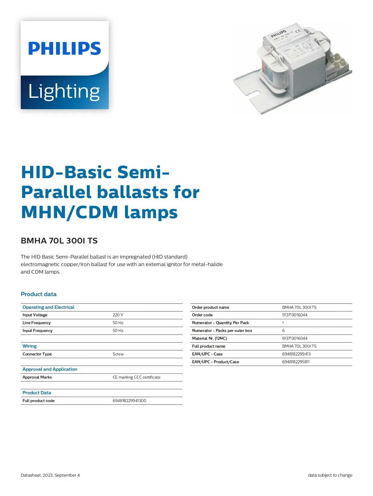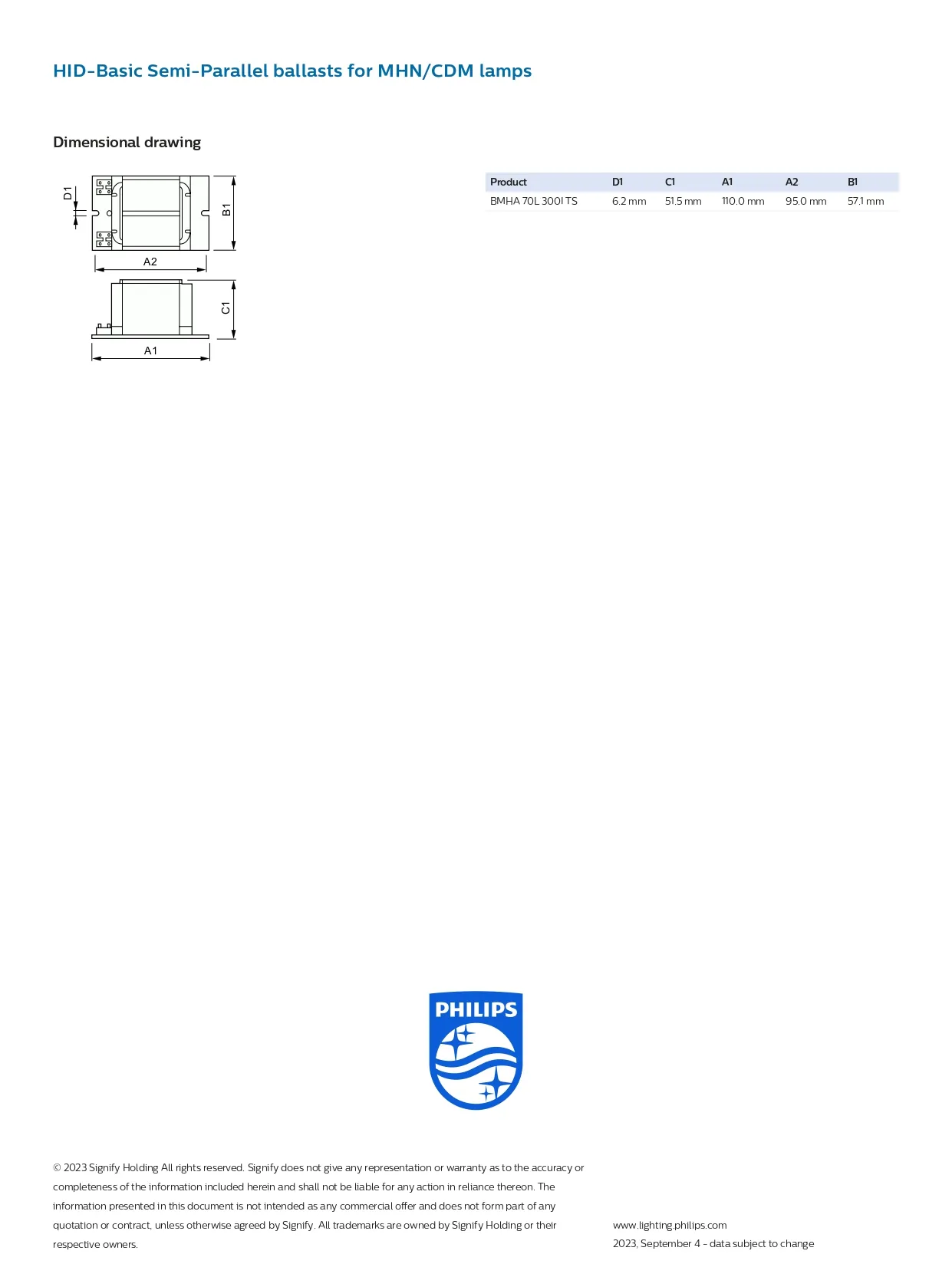 Chấn lưu đèn cao áp Metal BMHA 70L 300I TS