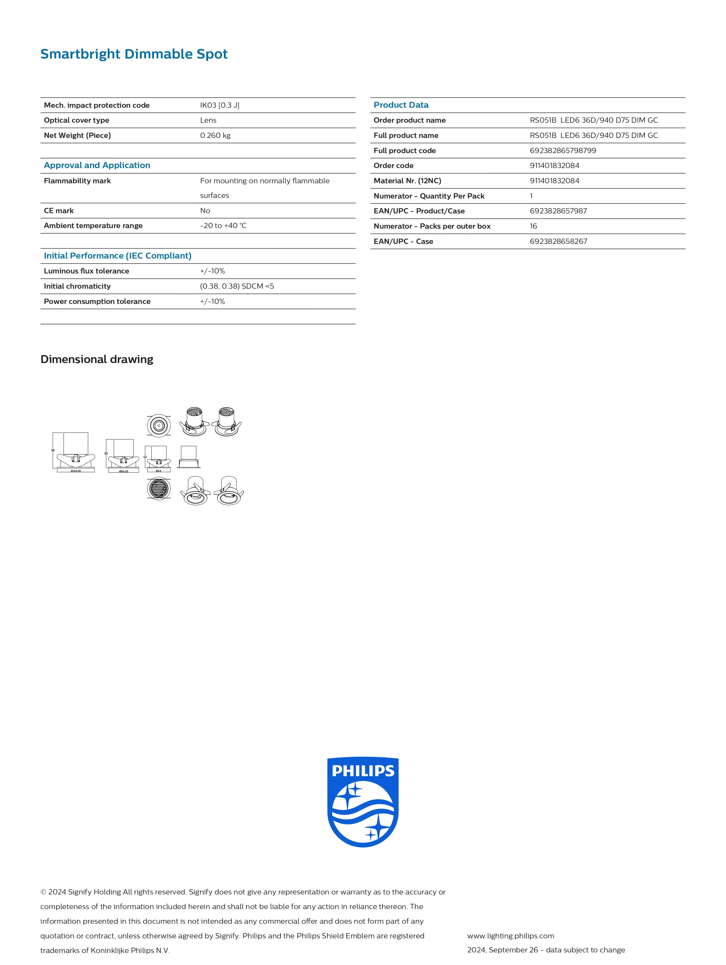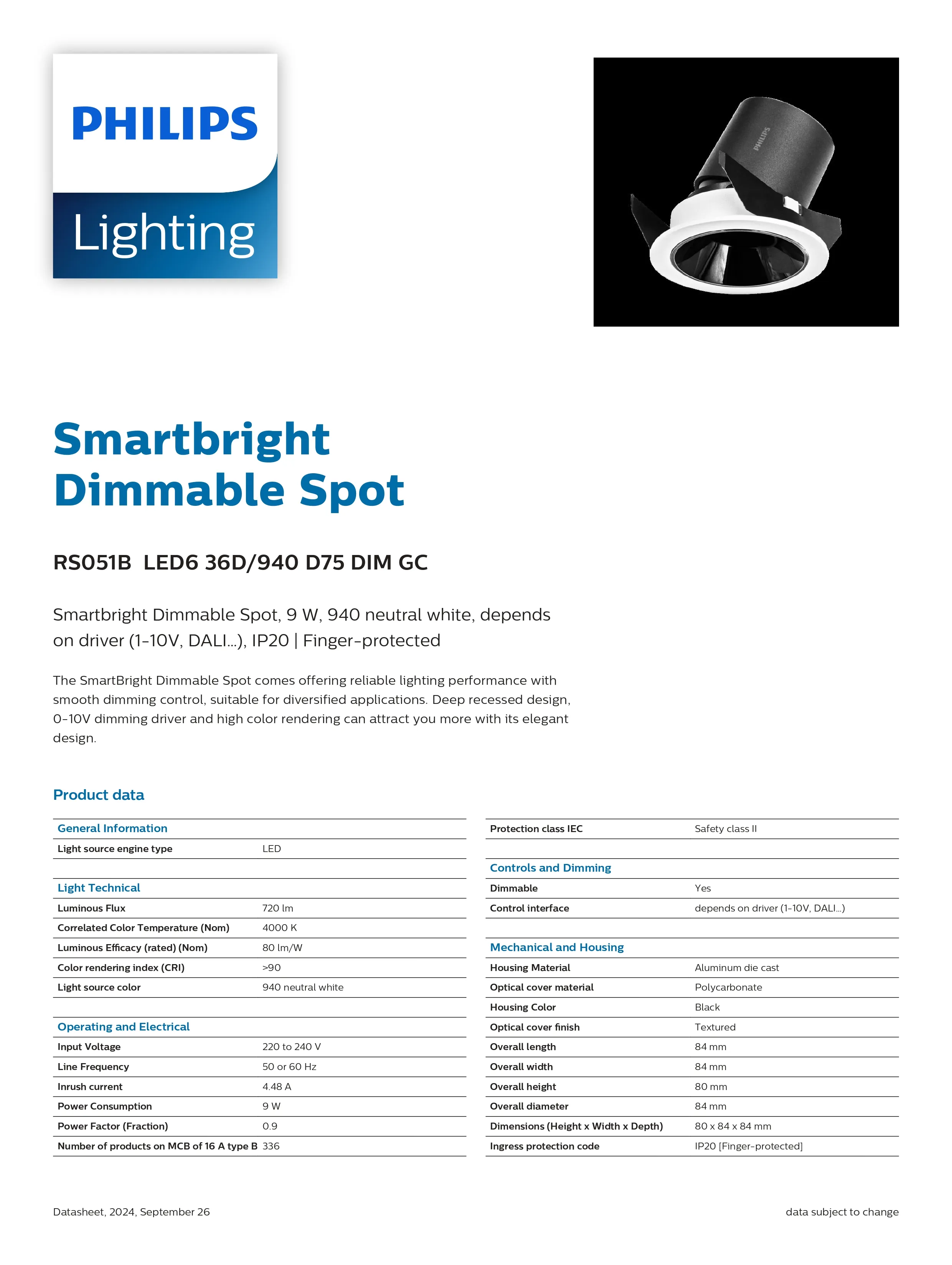 Đèn LED âm trần RS051B LED6 36D/940 D75 9W DIM GC