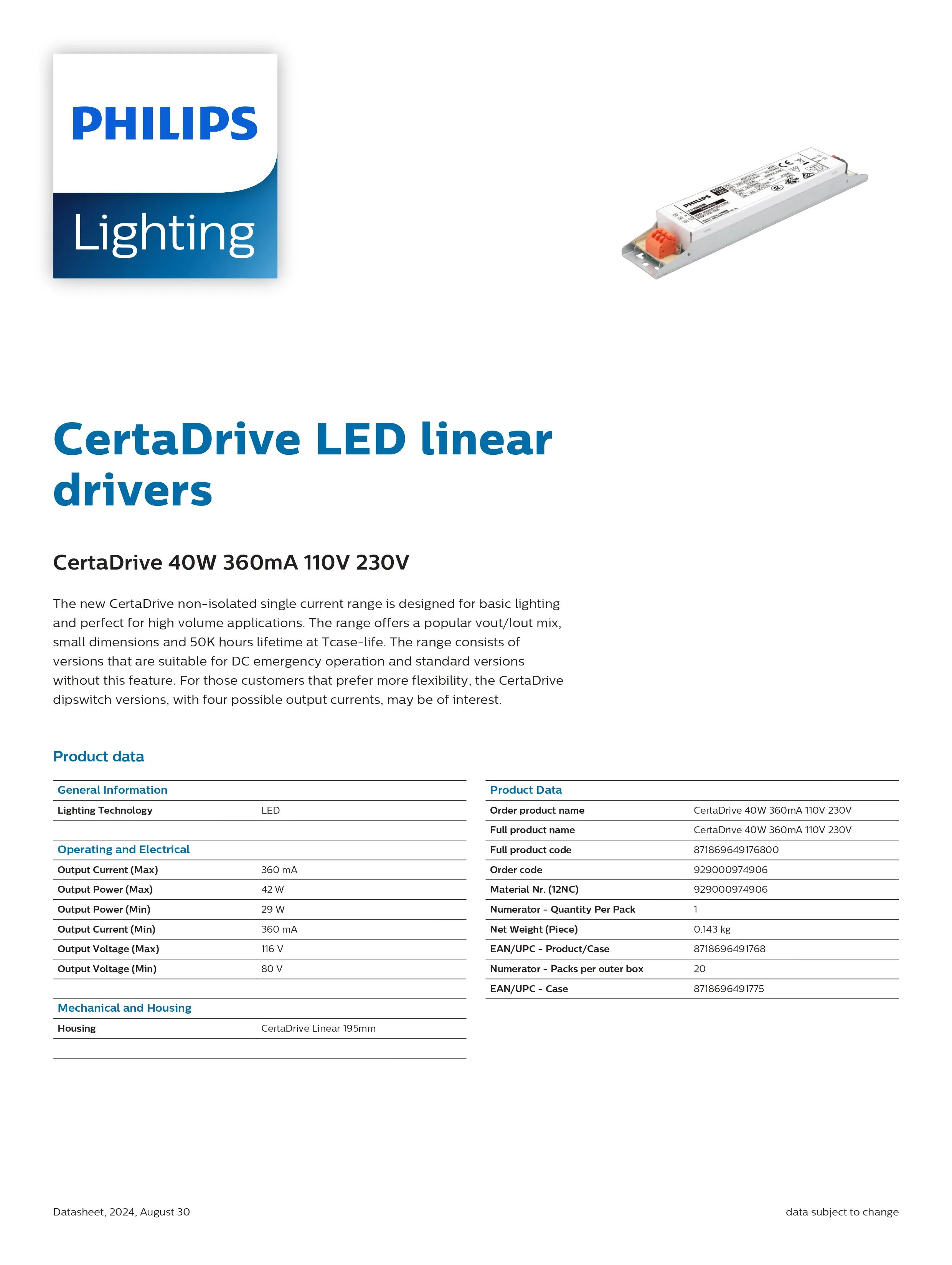Bộ chuyển đổi CertaDrive 40W 360mA 110V 230V NOW NEW IS 44W 350MA 70-120V for RC048