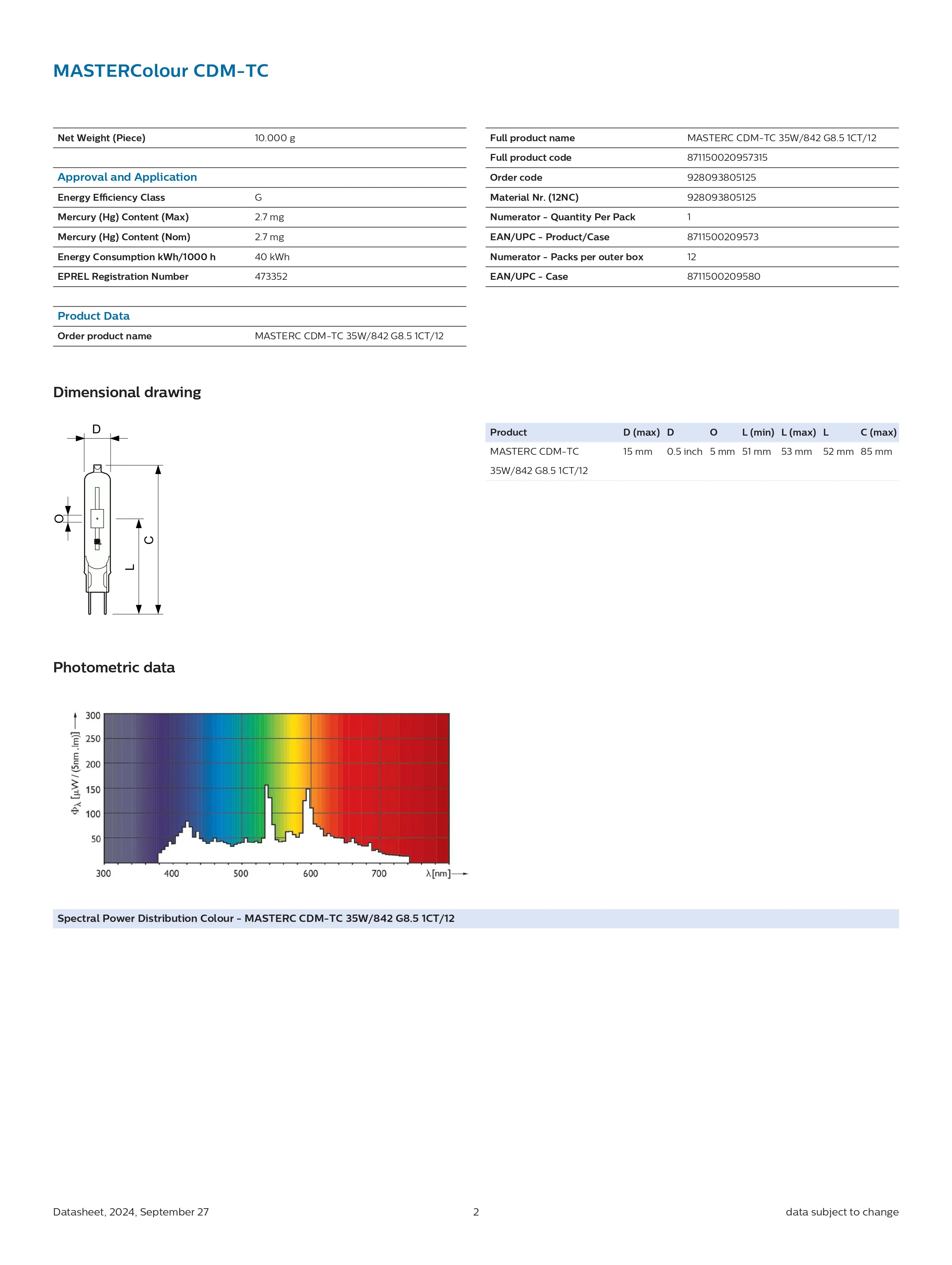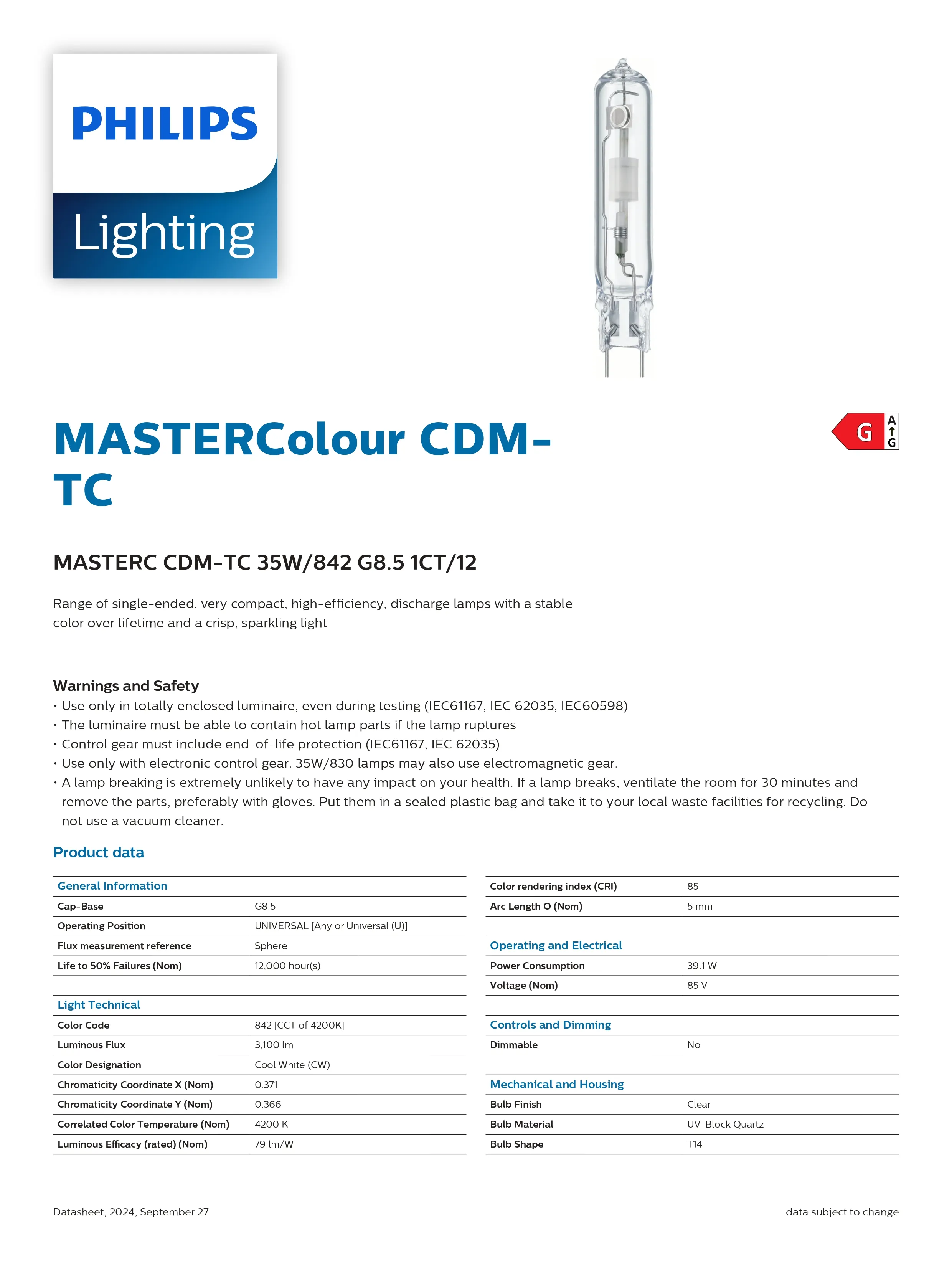 Bóng đèn cao áp MASTERC CDM-TC 35W/842 G8.5 1CT/12