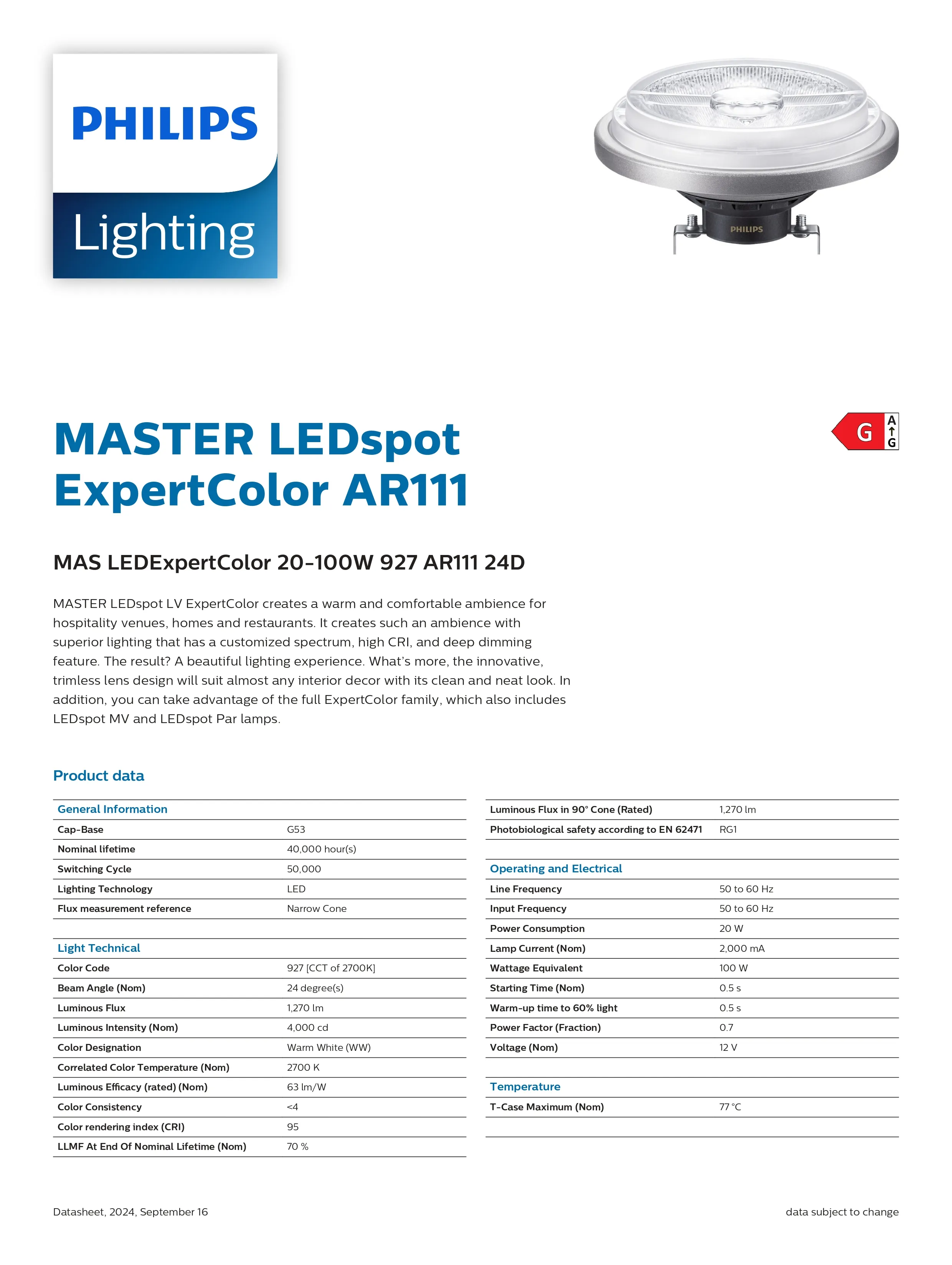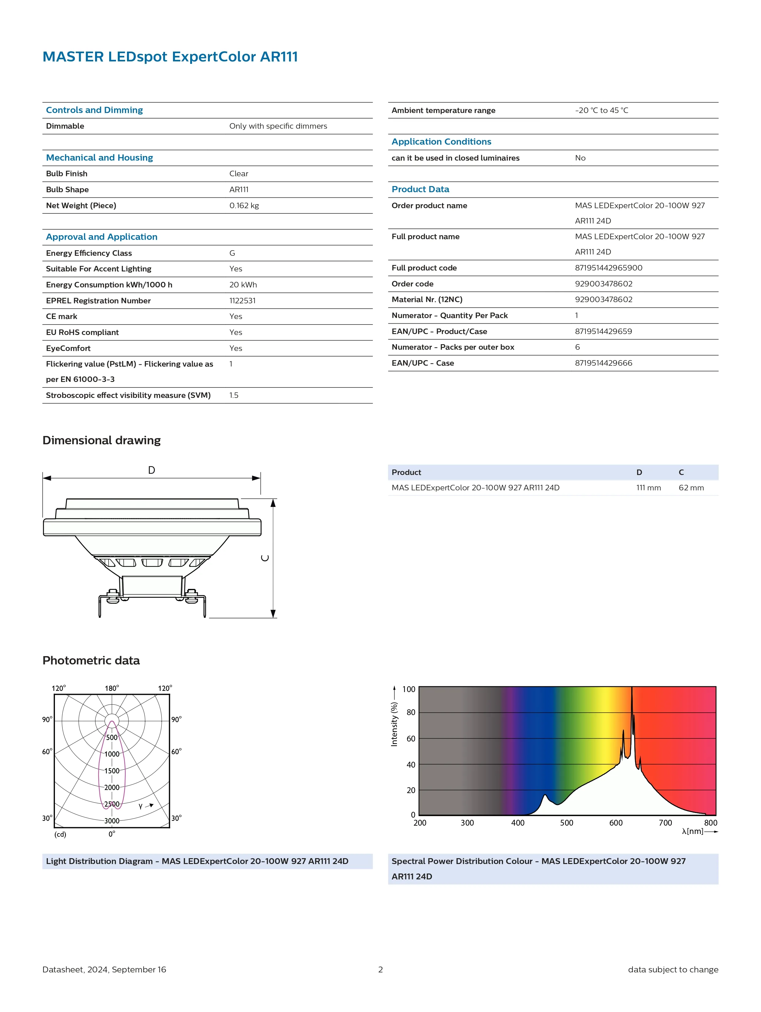 Bóng đèn MAS LED Spot LV 20-100W 927 AR111 24D