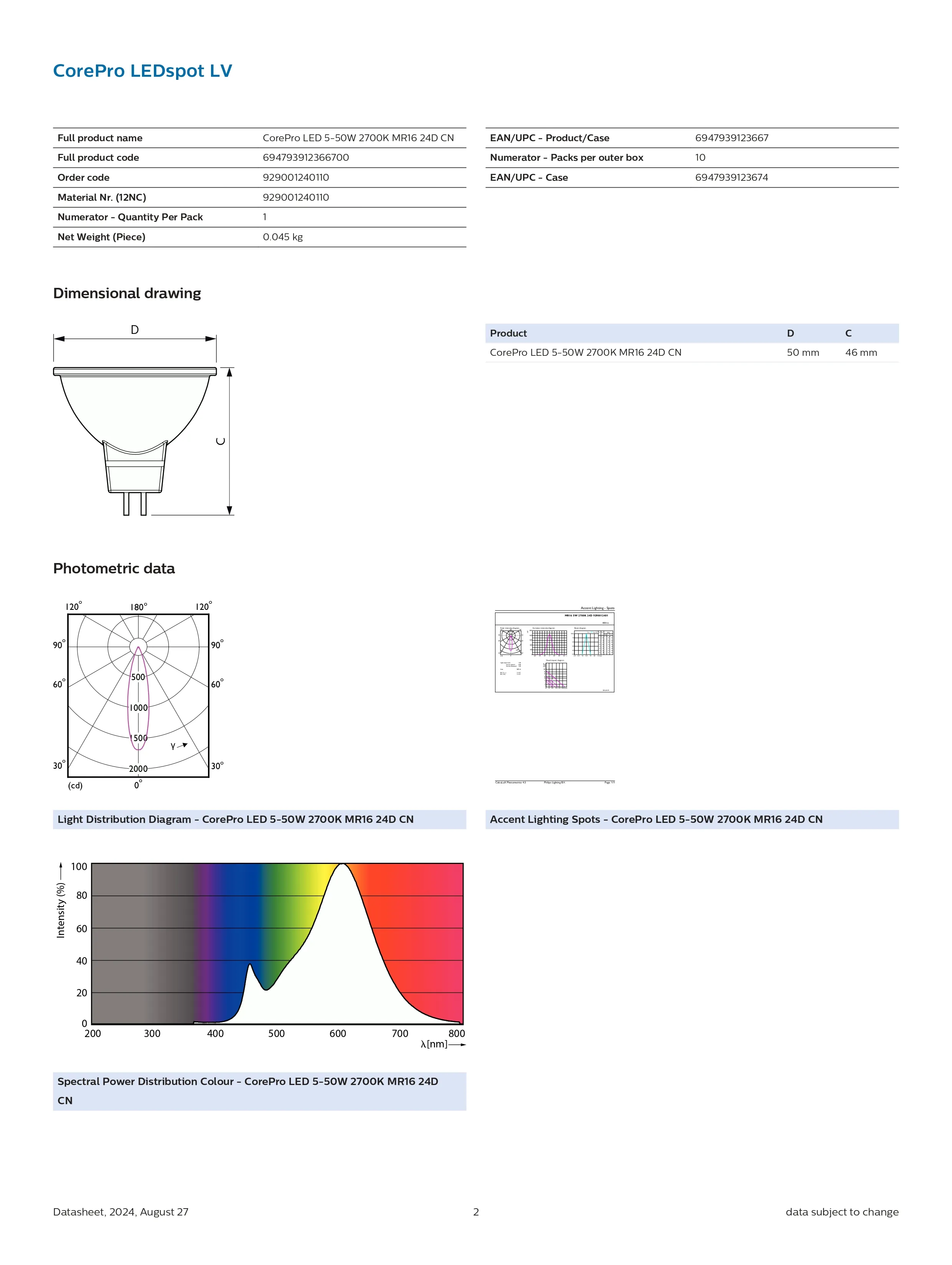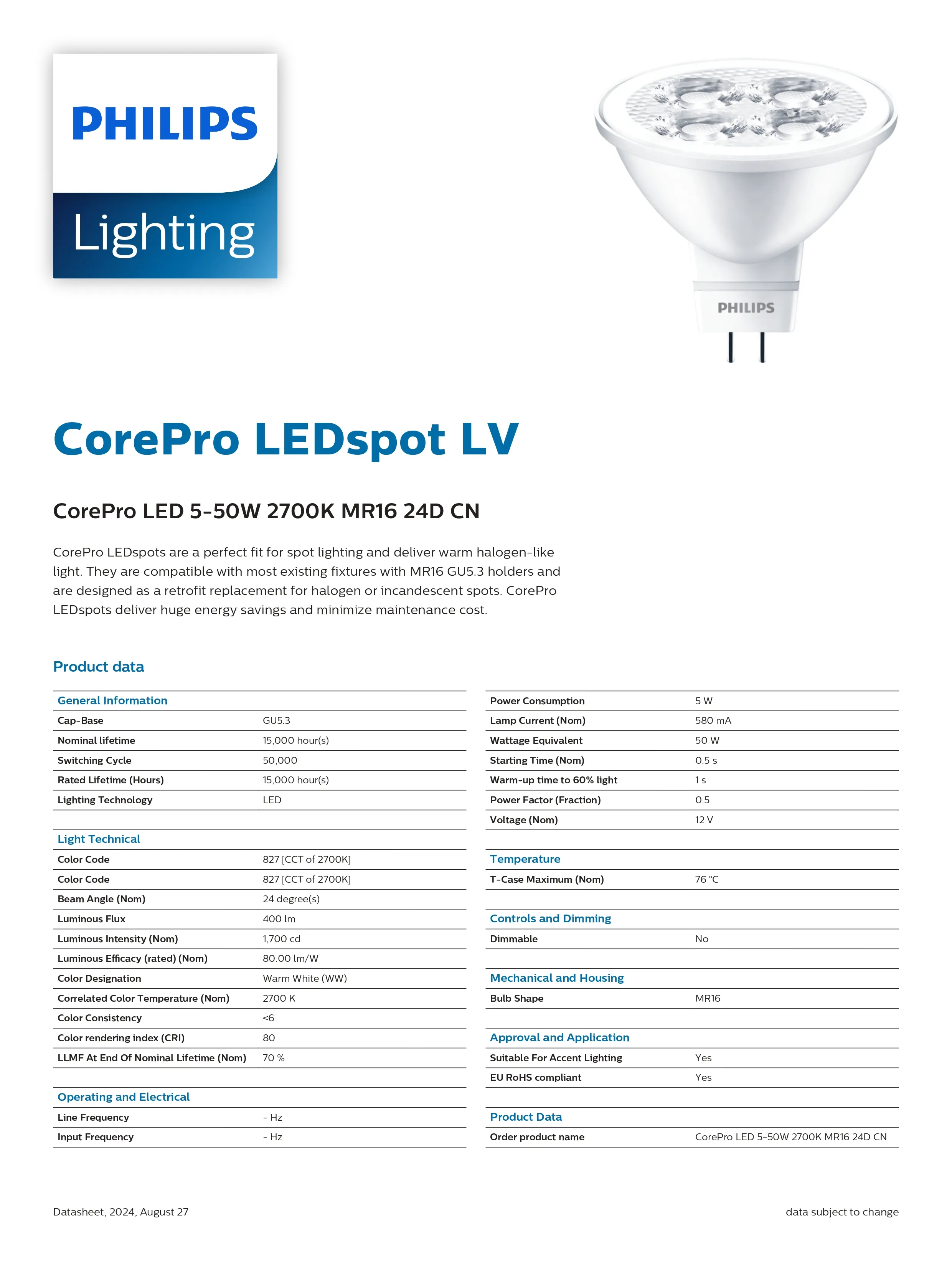 Bóng đèn Philips Core Pro LED 5-50W 2700K MR16 24D