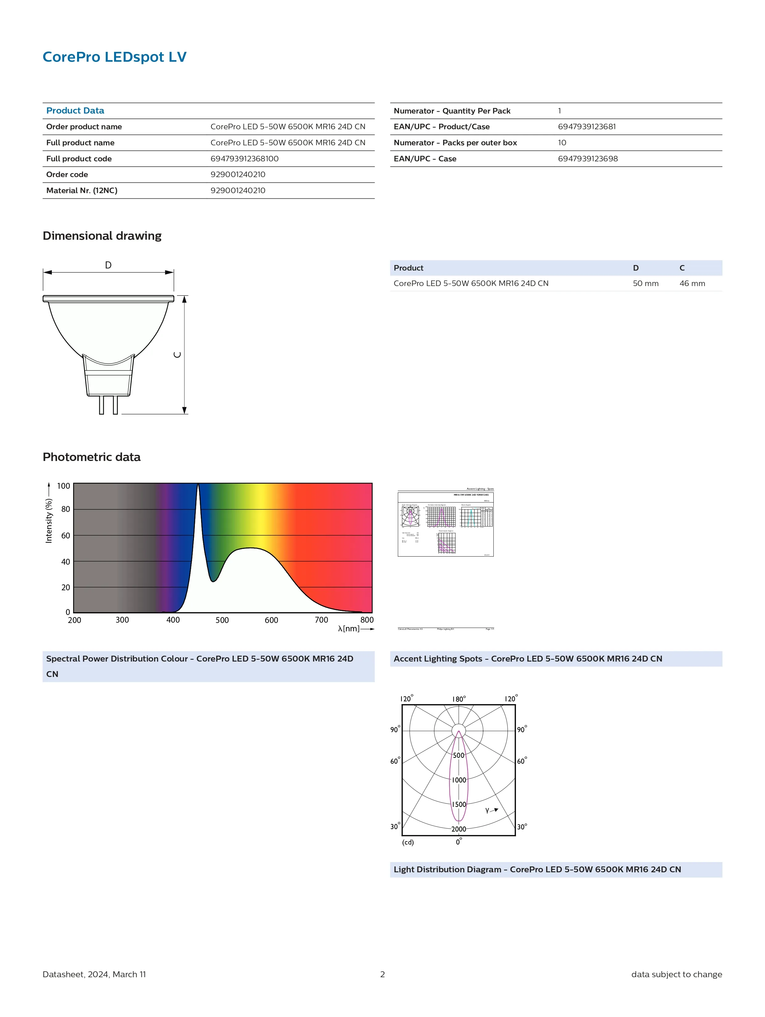 Bóng đèn Philips CorePro LED 5-50W 6500K MR16 24D CN GU5.3