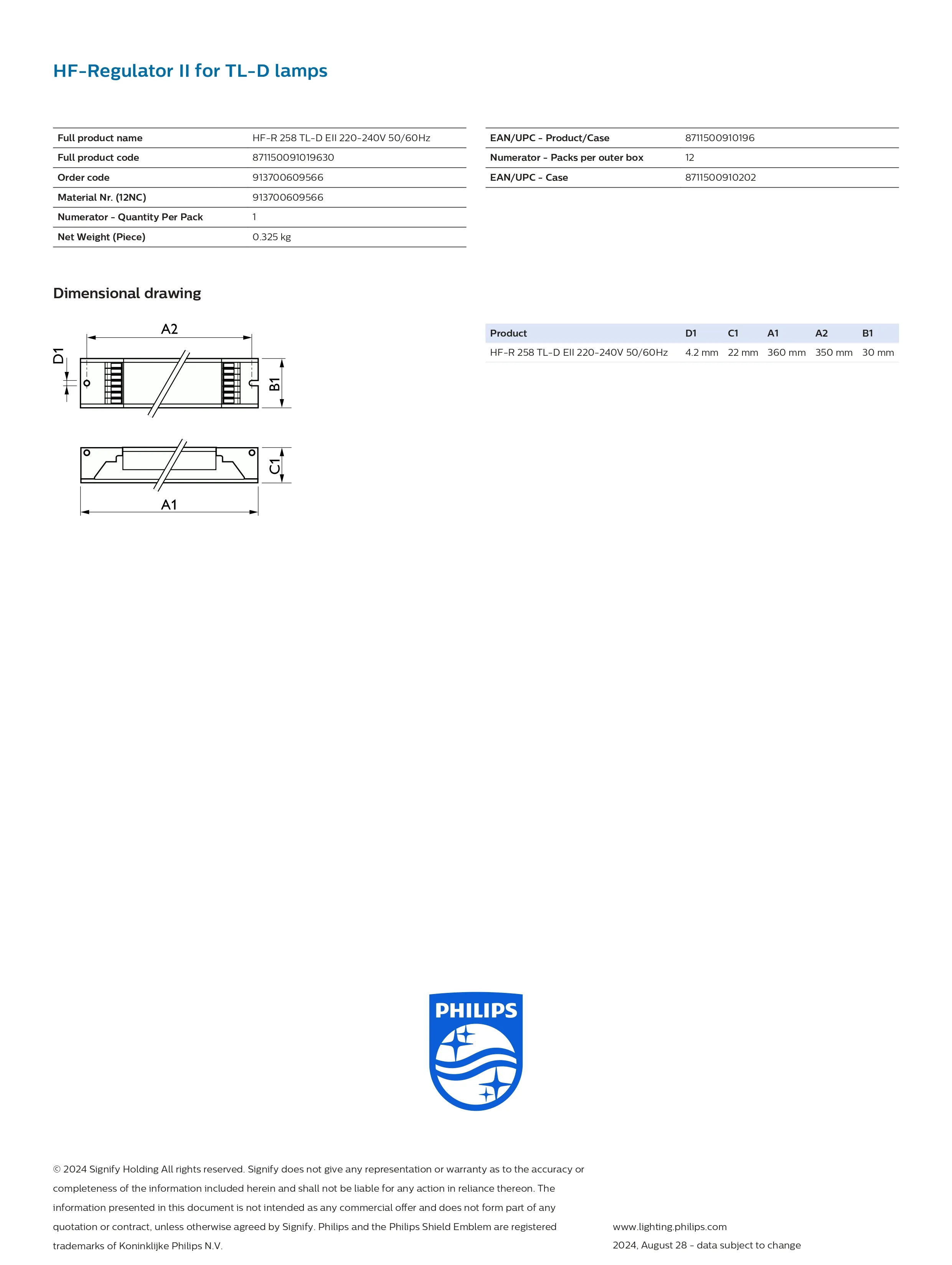 Chấn lưu điện tử dành cho 2 bóng đèn huỳnh quang 58W HF-R 258 TL-D